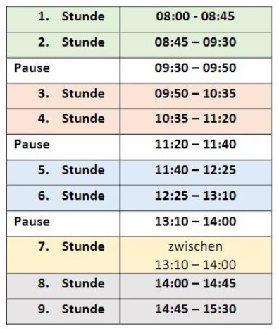 Unterrichts- und Pausenzeiten